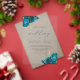 Cette élégante invitation au mariage présente des bouquets floraux turquoise ornés de feuillage doré. Le mot "mariage" et les prénoms du couple apparaissent dans un magnifique script de calligraphie turquoise, avec le reste du texte en fusain gris sans serif sur un arrière - plan transparent clair.