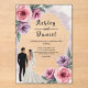 Cette élégante invitation à l'acrylique mariage floral aquarelle est parfaite pour un mariage moderne. Le design romantique présente un cadre floral aquarelle élégant avec une illustration de mariée et de mariée et de calligraphie noire sur un arrière - plan blanc.