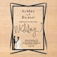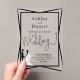 Cet élégant faire-part de mariage acrylique noir et blanc est parfait pour un mariage moderne. Le design simple présente une élégante calligraphie noire, un cadre noir chic et une illustration de mariée et de mariée sur un arrière - plan transparent et clair. La carte d'invitation comprend les détails du mariage au dos au lieu de payer une carte d'enceinte séparée.