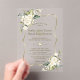 Ces Invitations Acryliques Premium (Clear ou Frosted) sont parfaites pour créer des impressions durables et exquises. Elégant design de carte avec aquarelle délicate fleurs blanches et feuilles verts, cadre faux or, cloison florale, sur un arrière - plan transparent. Utilisez l'outil Personnaliser pour ajouter vos informations. Plus d'idées dans ma collection de Mariages de fleurs acryliques