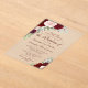 Ces belles invitations acryliques présentent un design agréable avec un bevy de roses d'aquarelle peints à la main dans les tons de rouge bordeaux et rose roux. Le libellé est formel lorsque le mariage est hébergé par les parents de la mariée. L'invitation a un style classique intemporel avec des textes de calligraphie sophistiqués. Merveilleuse façon d'invitation votre famille et vos amis à partager votre joie sur votre journée spéciale!