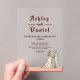 Cette élégante invitation à l'acrylique mariage style bande dessinée est parfaite pour un mariage moderne. Le design rétro présente une illustration vintage de mariée et de mariée et une calligraphie noire sur un arrière - plan à thème de bande dessinée.