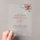 Elegant clear acrylic office Christmas party invitation featuring lovely winter greenery and berries. The design is accented with red trendy handwritten style text.
