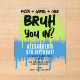 Un ado "Bruh" thème d'invitation d'anniversaire en utilisant la typographie cool. Un graffiti sur mesure pour enfants bleu et vert "pizza, jeux et gâteau" adolescent garçons anniversaire conception d'invitation parfait pour tout ado thème fête d'anniversaire. Customisez cette invitation d'anniversaire "Bruh" avec votre propre texte et faites-en le vôtre !