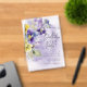 Cette simple mais élégante conception de carton d'invitation d'anniversaire en acrylique présente un bouquet de pensées violettes, jaunes et lavande et d'autres fleurs avec de la verdure. Le fond est une éclaboussure d'aquarelle violette sur un fond de papier aquarelle blanc texturé. Créé par Simply Farmhouse Press.