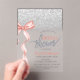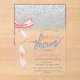 Une jolie invitation au baby shower présente un arc rose sur un arrière - plan bokeh parties scintillant argent. Ces invitations à la douche nuptiale sont facilement customisées pour votre événement en ajoutant simplement vos détails.