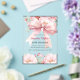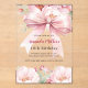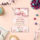 Un arrière - plan clair et transparent, décoré d'un grand arc rose et de fleurs roses. Personnalisez et ajoutez un nom et des détails du parti.