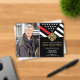 This design features a firemen's flag with black and white stripes, and a thin red line stripe as well. "Congratulations" and a fireman's badge sits above all of the party details for the retiring firefighter, lieutenant, or chief's retirement party. Customize this design even further with a photo of the retiring firefighter.
