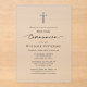 First Holy Communion, acrylic invitation cards featuring a custom designed Cross. The card's elegant typography features a fusion of unique handwritten ink script and modern minimalist text, all in shades of silver, platinum and black ink. The card itself is your choice of frosted or clear acrylic.