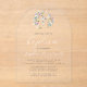Cette élégante invitation au baptême présente une fausse feuille argentée entourée d'une couronne d'aquarelle de fleurs sauvages et de feuillage vert et d'anémones bleus, roses et blancs. Le texte est en calligraphie élégante écriture blanche et en italique gris fusain et sans serif, sur votre choix d'un arrière - plan clair ou givré. Idéal pour une invitation au baptême neutre pour les hommes et les femmes.