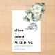 Elégant bouquet de fleurs blanches et cadre faire-part de mariage acrylique floral. Ce faire-part de mariage sophistiqué comprend un bouquet de fleurs blanches et des branches d'eucalyptus avec des feuilles verts sauge et un cadre blanc. Les noms du couple sont illustrés en caractères gras.