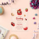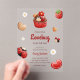 Invitation bébé en acrylic avec des illustrations de ladybug, gâteau, fleur et fraise dans un schéma de couleur rouge, blanc et marron clair. Les illustrations sont associées à une police d'écriture ludique et une police sans serif élégante dans laquelle toutes vos informations personnalisées sont écrites. Découvrez notre magasin pour plus d'articles de cette collection.
