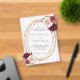 Pour une mariage élégante et romantique. Un arrière - plan clair et transparent décoré de fleurs, de beige moelleux et bordeaux. Un cadre ovale en faux or. Personnalisez et ajoutez vos noms et détails.