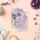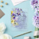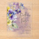 Ce design simple mais élégant d'invitation à l'anniversaire acrylique présente un bouquet de pansies violet, jaune, lavande et d'autres fleurs avec verdure. L'arrière - plan est un arrière - plan d'aquarelle violet sur un papier d'aquarelle blanc texturé. Créé par Simply Farmhouse Press.