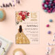 Une invitation moderne, élégante et glamour pour une Quinceañera, 15ème anniversaire. Un arrière - plan transparent, une fille portant une robe dorée et des roses rouges, roses et dorés, des fleurs. Le nom est écrit avec un script de style moderne écrit à la main. Personnalisez et ajoutez les détails de votre fête.