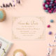 Cet élégant mariage formel d'inspiration vintage, à l'exception de la carte de date, présente le texte en écriture dorée et les polices serif, encadrées par un délicat motif vintage de la vigne d'or, sur un arrière - plan transparent clair.