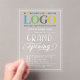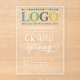 Grande invitation d'ouverture acrylique dans un design élégant de typographie blanche pour votre entreprise, peut-être un magasin, un restaurant, ou un salon de beauté. Ajoutez aussi votre propre logo, imprimé en couleur ! Invitation d'ouverture en acrylique transparente dans un design élégant de typographie en blanc personnalisé avec votre logo à des amis invitations, des membres de la famille, des résidents locaux, et futurs clients et clients à la grande ouverture de votre entreprise.