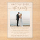 Élégant elopement ou petit faire-part mariage et réception de mariage gelé l'invitation acrylique avec votre photo, "Happily Ever After Party" dans un mélange de typographie or simple et script or chic avec des swashes, vos détails de réception et vos noms dans un script signature.