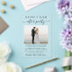 Élégant elopement ou petit faire-part mariage et réception de mariage clair acrylique avec votre photo de jour de mariage, "Happily Ever After Party" dans un mélange de typographie simple et de script chic, vos détails de réception et vos noms dans un script signature.