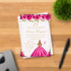 Cette invitation à la fête d'anniversaire élégante et glamour présente une belle princesse aux cheveux blonds et à la peau claire dans une robe de boule rose chaud. Le texte combine écriture manuscrite et polices sans serif modernes pour un look élégant et sophistiqué. Les compositions florales, les papillons et les confettis d'or créent un mélange parfait de rustique et de chic. Graphiques par www.etsy.com/uk/shop/SunflowerDayLove