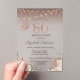 Une invitation moderne, chic et glamour avec une élégante tiare dorée, des lampes à cordes, des papillons de parties scintillant et des fleurs roses.