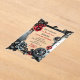 Invitations de mariage Steampunk avec des engrenages en métal argenté et des fleurs rouges et un texte de style gothique.