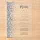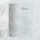 Le bord gauche de cet élégant menu mariage moderne présente une bordure de parties scintillant en faux argent. Le texte personnalisable combine écriture manuscrite grise et police sans serif sur un arrière - plan clair.