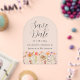 Annoncez votre jour spécial avec cette élégante carte Boho Fall Wildflower Meadow Wedding Save the Date, un mélange parfait de chaleur automnale et de romance bohème. Conçue avec une illustration originale de fleurs sauvages à l'aquarelle par l'artiste Catherine Sweetman, cette carte capture la beauté d'un pré rustique en pleine floraison automnale. Les fleurs peintes à la main en terracotta, rouille, orange, argile, pêche, prune, corail, rose doux et jaune doré évoquent le charme cosy de la saison.
