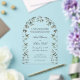 Une faire-part de mariage d'arcade élégante et classique avec une arcade bordée de vert avec eucalyptus et fougères avec du texte en script mariage classique et une police minimaliste non serif pour les détails. Cette invitation acrylique est disponible en finitions claires et dépoli.
