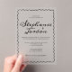 Ajoutez une touche de modernité à votre style mariage ludique avec ce Faire-part de mariage en acrylique blanc et noir - une approche audacieuse et créative de votre suite insolite. Imprimée sur acrylique transparent ou dépoli, cette invitation unique présente un cadre ondulé dessiné à la main et une police grasse et fantaisiste en noir frappant pour un look propre et très contrasté. Parfait pour les couples qui cherchent à mélanger le charme décalé à la sophistication moderne, cette version acrylique est une pièce exceptionnelle dans une suite cohésive qui est tout sauf ordinaire.