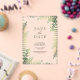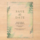 Éblouissez vos invités avec cet élégant enregistrer la date avec de beaux feuilles et la typographie moderne. Ajoutez simplement les détails de votre événement sur ce modèle facile à utiliser pour en faire une carte unique de sauvegarde de la date.