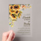 Ce design rustique en acrylique de tournesol encapsule la beauté naturelle des tournesols, créant une ambiance délicieuse pour votre journée spéciale. Entièrement personnalisable, cette invitation vous permet de personnaliser chaque détail, du nom de la mariée à la date et à l'heure de votre mariage et à l'emplacement du lieu.