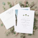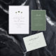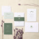 Ce faire-part de mariage photo chic et minimaliste présente des illustrations de palmiers et des polices de script et de serif élégantes. Une merveilleuse invitation à un mariage tropical ou de plage.