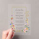 Bordure or gracieuse sur acrylique clair avec d'élégants parchemins agrémentés de fleurs sauvages pastel chic boho romantique en bleu pâle, rose et jaune. Cette charmante collection est le complément parfait à votre mariage sur le thème du printemps, de l'été ou du jardin.