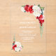 Invitation vos amis et les proches à votre mariage pour assister et célébrer le début de votre voyage de vie avec cet élégant faire-part de mariage floral rose rouge et blanc acrylique. Le texte personnalisable vous permet d’ajouter sans effort les noms de la mariée et du marié, la date du mariage et les détails nécessaires de votre célébration.