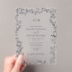 Invitations En Acrylique Mariage Monogramme Élégant bleu marine à feuilles