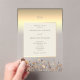 Élevez votre mariage avec cette élégante invitation en acrylique transparente et boho-chic. Doté d'acrylique gelée aux accents dorés époustouflants, complété par des fleurs sauvages d'aquarelle rustique, ce design moderne apporte une touche de nature et de sophistication à votre journée spéciale. Parfait pour les couples à la recherche d'une invitation unique et élégante !