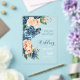 Une floraison de roses brillants et audacieux dans les tons bleu poussiéreux et pêche est le point de convergence de nombreuses pièces de cette suite mariage qui dispose également d'élégants textes de script et des dispositions de design moderne. Le faire-part de mariage acrylique transparent montré ici a une bordure latérale luxuriante de roses. Entrez facilement les détails de votre mariage à l'aide du modèle fourni. Cherchez ID584 pour voir toutes les pièces correspondantes dans ce bel ensemble de mariages.
