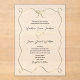 Faites une première impression durable avec ce faire-part de mariage acrylique noir et blanc élégant et moderne. Doté d'un coeur romantique de cordes d'or et d'un arc délicat dessiné à la main au sommet, ce design chic est encadré de touches design de style doodle pour une touche sophistiquée et ludique. Parfait pour les mariages contemporains, minimalistes ou de luxe, cette invitation transparente apporte un look unique et poli à votre suite mariage. Un choix époustouflant pour les couples à la recherche d'élégance moderne et d'esprit artistique.