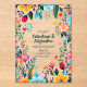 Célébrez votre journée spéciale avec ce faire-part de mariage mexicain animé de la Fiesta, qui présente des fleurs colorées inspirées de l'art populaire. Le design complexe présente des fleurs audacieuses dans les tons bleu, jaune, rose et rouge, créant un ton festif et joyeux. Parfait pour les couples qui souhaitent organiser une fête mexicaine sur le thème de la Fiesta ou une fête au charme culturel. Entièrement personnalisable pour rendre votre journée unique.