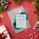 Cette élégante carte Save the Date présente un bouquet floral luxuriant et romantique en bleu turquoise avec un feuillage en faux feuille argent sur un arrière - plan transparent et transparent. Customisez le texte gris turquoise et charbon de bois dans des polices de caractères élégantes sur un rectangle gris.