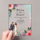 Cette élégante invitation à l'acrylique mariage floral aquarelle est parfaite pour un mariage moderne. Le design romantique présente un cadre floral aquarelle élégant avec une illustration de mariée et de mariée et de calligraphie noire sur un arrière - plan blanc.