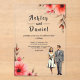 Cette élégante invitation à l'acrylique mariage floral aquarelle est parfaite pour un mariage moderne. Le design romantique présente un cadre floral aquarelle élégant avec une illustration de mariée et de mariée et de calligraphie noire sur un arrière - plan blanc.