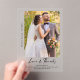 Photo Calligraphy Mariage Merci en acrylique givré Express votre gratitude avec élégance et charme en utilisant notre Carte de remerciements Mariage économique, avec votre photo mariage chère et police de calligraphie magnifiquement travaillé. Créée avec soin, cette carte de remerciements offre une façon sincère d'apprécier l'express à vos proches. L'inclusion de votre photo mariage ajoute une touche personnelle, vous permettant de partager une mémoire chère de votre journée spéciale. La police calligraphie ajoute une touche de sophistication et de raffinement à votre message de remerciement.