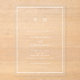 Ces invitations de mariage élégantes et modernes en acrylique clair présentent un design de texte simple et minimaliste, avec un cadre blanc classique à la frontière. Ajoutez vos initiales ou votre monogramme pour les rendre complètement vôtres.