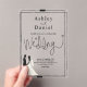 Cet élégant faire-part de mariage acrylique noir et blanc est parfait pour un mariage moderne. Le design simple présente une élégante calligraphie noire, un cadre noir chic et une illustration de mariée et de mariée sur un arrière - plan transparent et clair. La carte d'invitation comprend les détails du mariage au dos au lieu de payer une carte d'enceinte séparée.