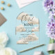 Elégante aquarelle calligraphie beige Ciel Thème Genre Neutre Baby shower Acrylique Invitation avec le titre "Sur le nuage neuf".