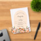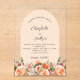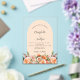 Pour une mariage élégante et romantique. Un arrière - plan clair et transparent décoré de fleurs orange, pêche et rose. Cadre en arc. Personnalisez et ajoutez vos noms et détails.