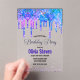 Chic bleu violet ombre goutte à goutte parties scintillant monogramme d'anniversaire acrylique invitation pour n'importe quel âge avec parties scintillant cool scintille. Pour le rendre spécial, vous le personnaliserez avec vos propres informations avec de belles polices monographiques. VEUILLEZ NOTER : Il s'agit de graphiques imprimés plats - pas de parties scintillant réelle, de bijoux ou de pièces surélevées