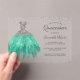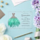 Invitation vos invités de quinceañera dans le style avec cette élégante invitation de fête avec une belle aqua scintillante et robe d'argent et vos détails de fête en script de calligraphie de typographie grise pour vous de personnaliser bordé avec la fausse parties scintillant d'argent sur un arrière - plan en acrylique voir à travers. Conçu par Susan Coffey.
